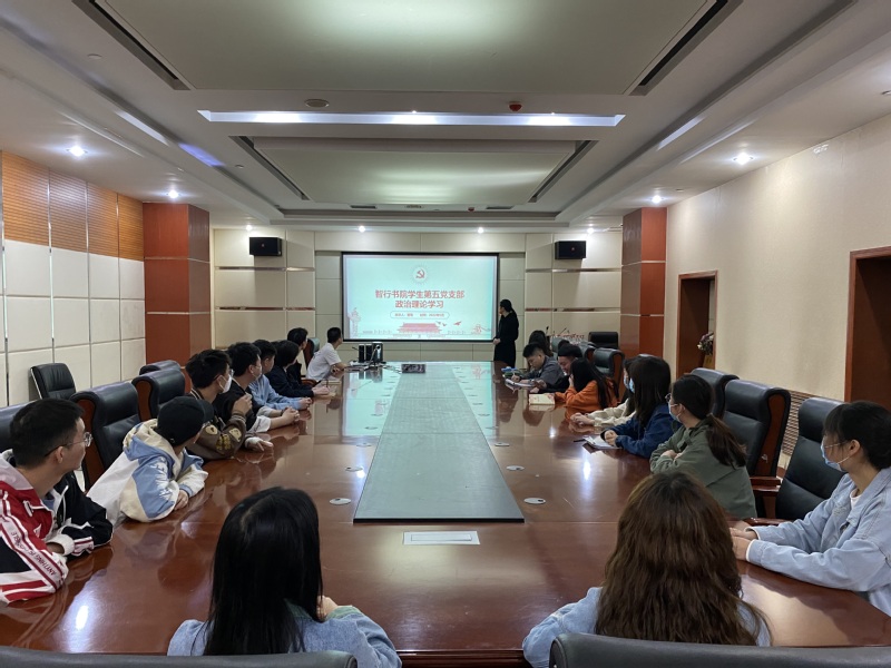 5月20日下午,智行书院学生第五党支部于新乡校区会议室开展五月份政治理论学习。会议由党支部书记苗琨主持,党支部全体党员参加。