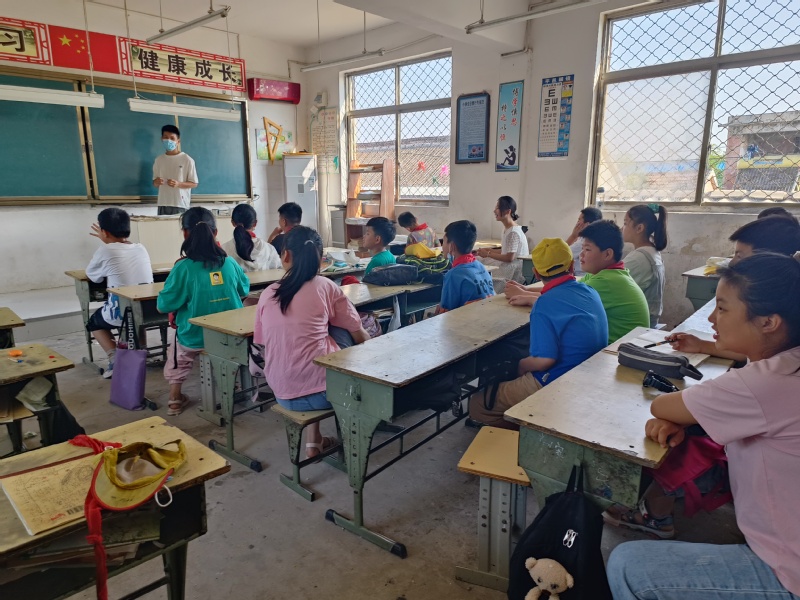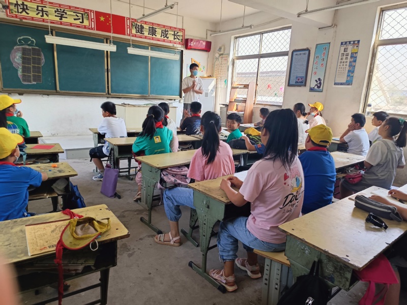 为渗透前岳连村的每一个角落,开始发放我们准备好的红色知识小册子,内容通俗易懂。并且经村委会同意团队于实践期间借用村委会的广播开展每日一篇党史小故事的广播活动。后期和前岳连小学校长商议后,团队成员为三年级的学生们做了一场感人至深的党史分享活动。宣讲团从中国共产党的出生、中国共产党的“样子”、中国共产党的理想三个方面进行了阐述。