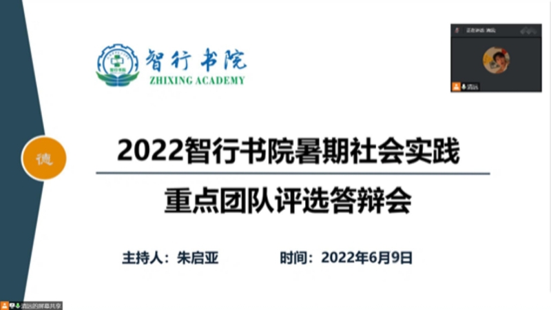6月9日,智行书院团总支于线上开展2022年暑期社会实践重点立项团队评选答辩会。出席本次会议的指导老师有校团委史良老师、傅阳老师以及智行书院全体辅导员老师。答辩会由书院团总支书记孙媛慧主持。