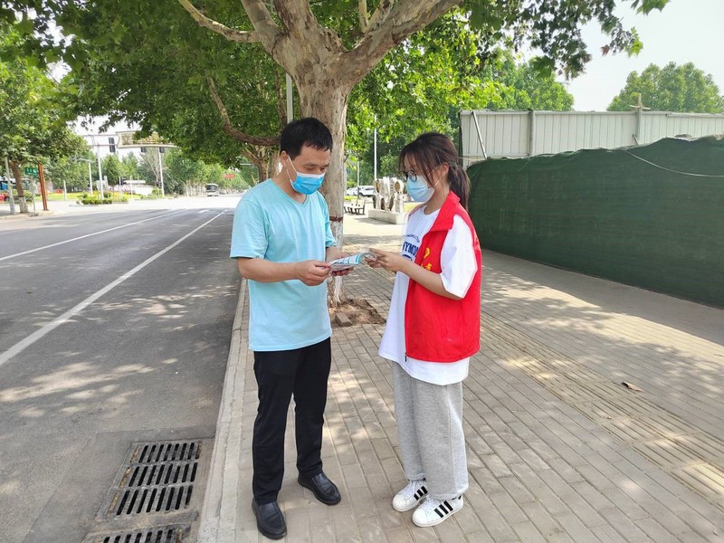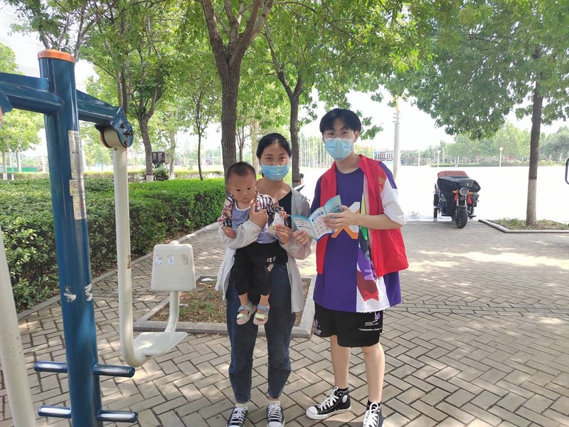 协助完成疫苗接种后,实践团还通过走访修武县街道以及体育场等人群较多的地方向路过民众发放防疫宣传小卡片以及手册,讲解防疫相关知识。实践团成员还轮流坐上咨询台,接待前来咨询的社区居民,回答居民们的问题,消除他们对新冠疫苗的疑虑,并为带有孩子的家长赠送了小礼品,以此提高孩子学习防疫知识的积极性。在此过程中,姚远、毕耀心向群众讲解防疫知识,群众十分配合并接过防疫宣传小卡片,认真聆听防疫相关知识讲解,且主动询问关于科学防疫的知识,这让团队充满干劲。