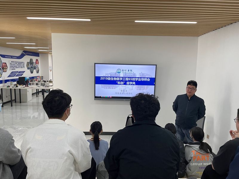 4月1日上午,智能医医学工程学院学业导师张展召在智行书院智创苗圃召开以“‘科创’促学风”为主题的学业导师交流会,2019级生物医学工程65班全体学生参加。会上,张老师首先就当前同学们即将面临且最为关心的实习常见问题进行一一解答,并结合2018级学生的实习情况,为同学们应该如何结合实际、合理地选择适合自身未来职业发展的实习单位提供了建议和意见。随后,张老师详细介绍了“挑战杯”、“互联网+”大学生创新创业比赛以及全国大学生智能技术应用大赛等各类科创竞赛比赛,他鼓励大家在不断的学习中,进行科研训练,积极参与各类比赛,积累相关经验,达到以赛促学、以赛促创的目的,并表示他会随对有困难的同学提供支持和帮助,也希望同学们能够与学院的任课老师勤联系,积极组队,积极备赛。此次学业导师交流会在和谐融洽的氛围中圆满结束,全体同学都收益颇丰。