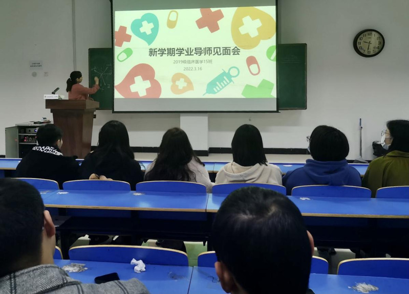 为帮助同学们制定新学期学业规划,加强学业导师与学生的沟通联系。3月23日上午,2019级临床医学15班全体同学在问学楼403教室参加了本学期学业导师见面会,会议由学业导师高焕君主持。会上,高老师从“考研的准备工作”、“实习与见习”、“怎样学习心电图”三方面为同学们解决困惑。对于大三学生如何对待考研,她说到:“考研是医学生重要的阶梯,也是我们必须攻克的一个难关,现在制定考研计划可以帮助我们弯道超车,取得先机。”此外,高老师从自身实习的经历出发,将自己多年来的工作和成长经验分享给大家,勉励同学们积极参加实习,成长为一名优秀的医生。最后,针对心电图的学习,高老师详细地为同学们展示了心电图的推导过程,并推荐相关书籍帮助大家走出困境。会议结束,同学们反响热烈,纷纷表示本次见面会不仅为师生提供了交流的平台,也为大家随后的专业课学习打下了良好的基础。