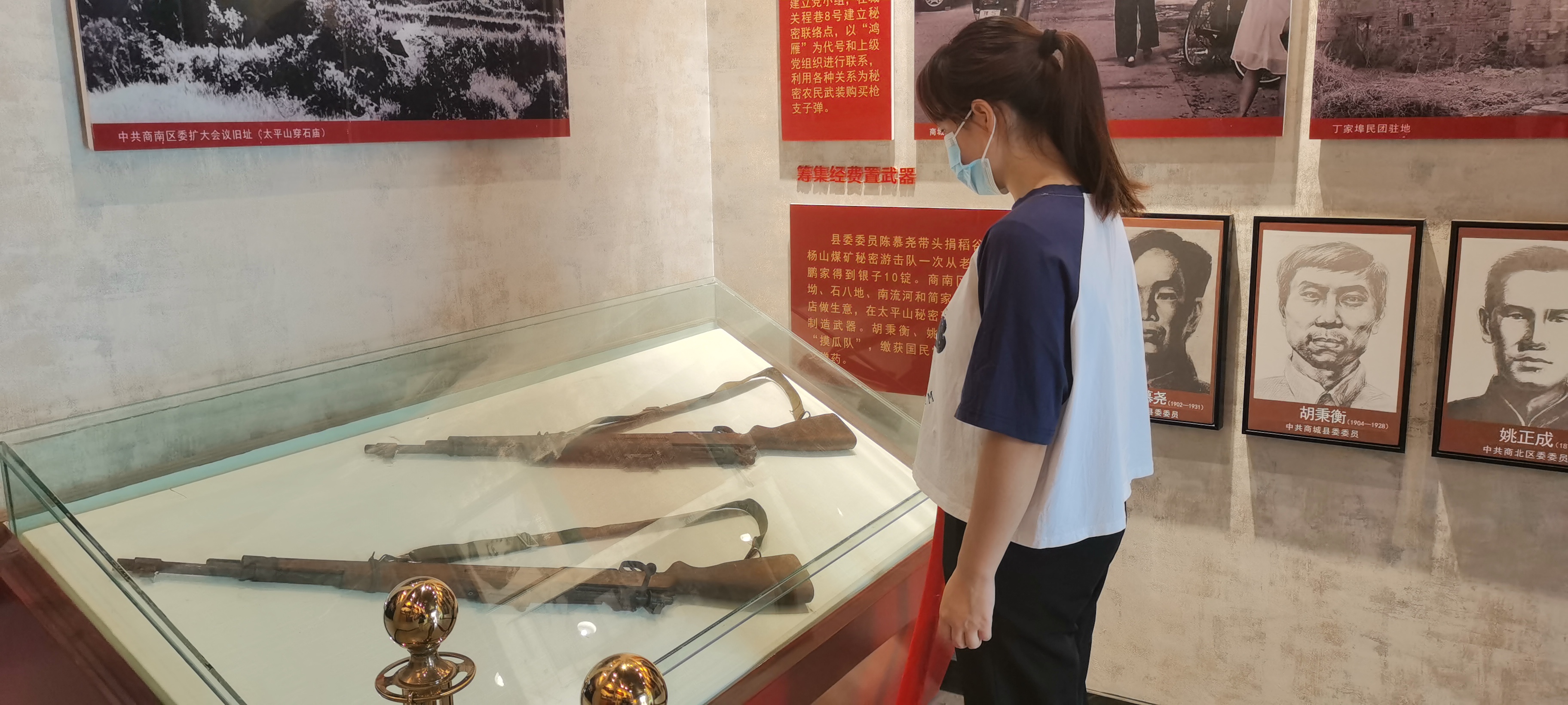 随后,以团队成员朱启亚为领队的队员们进入纪念馆,6个不同主题的展厅映入眼帘。桃花红雨英雄血,碧海丹霞志士心......这一个个展厅展示了商城县在革命时期的变化与艰辛深深地震撼着团队每一个成员。馆内陈列的20件烈士遗物、30幅珍贵图片和刘炳华、曹思明、陈明义等革命烈士的事迹、文献资料与骨灰。队员们聆听着朱启亚从商城起义背景、意义、范围以及起义成功后对革命取得最后胜利所发挥的巨大贡献的详细解说,看着一张张神情稚嫩却又充满坚毅的烈士照片,为革命志士们视死如归、不屈不挠的大无畏精神所感染、震撼着,敬佩之情油然而生。