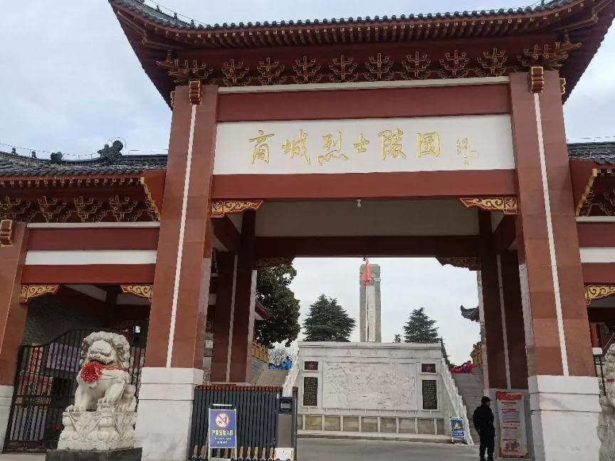 商城县革命烈士陵园坐落在商城县城东郊具有光荣的革命传统和文化,从新民主主义革命到社会主义建设的70年间,有8万多名优秀儿女为革命事业献出了宝贵的生命。为纪念先烈,激励后人,1979年决定兴建烈士陵园。陵园1983年奠基,1992年5月落成。陵园坐北面南,依山而建,主要建筑有烈士纪念碑、烈士纪念馆和烈士骨灰堂,占地面积近2.6万平方米。