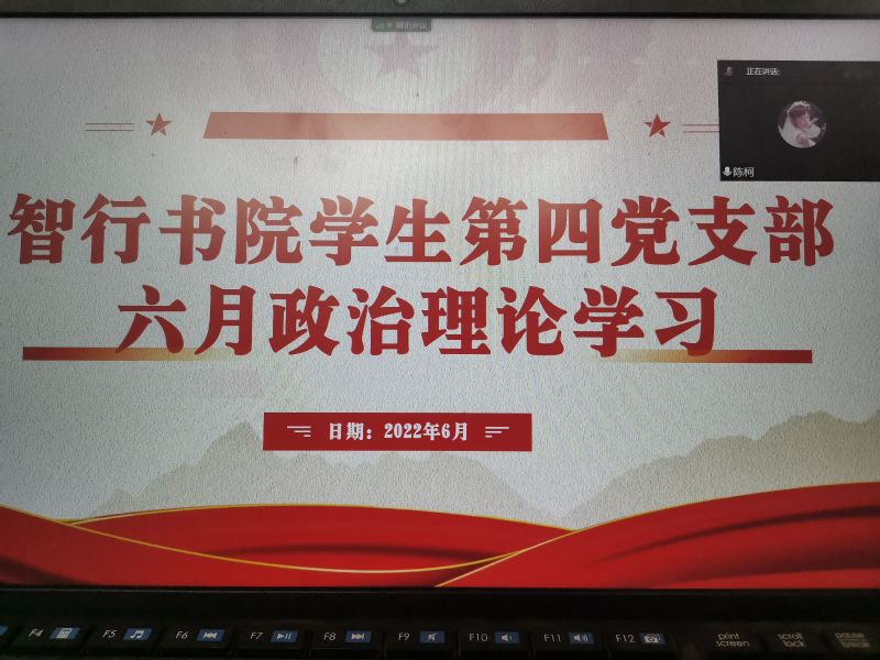 6月24日晚,智行书院学生第四党支部于线上开展六月份政治理论学习。会议由党支部书记陈柯主持,党支部全体党员参加。