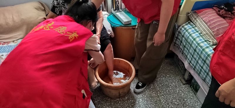 百善孝为先,尊敬和爱护老人是中华民族的传统美德。队长聂菡冰通过向养老院工作人员的询问,了解到老人们的日常活动和作息。由于老人们行动不便,团队分成两组,一队首先对老人们的房间进行了清洁、清洗换洗衣物、帮老人们洗脚,希望老人们有一个整洁的生活环境,心情愉快,在打扫的同时跟老人们聊聊天,给她们分享一些有趣的故事;另一队为老人们量血压,了解她们的身体状况,为她们讲解多种疾病的症状以及预防知识。