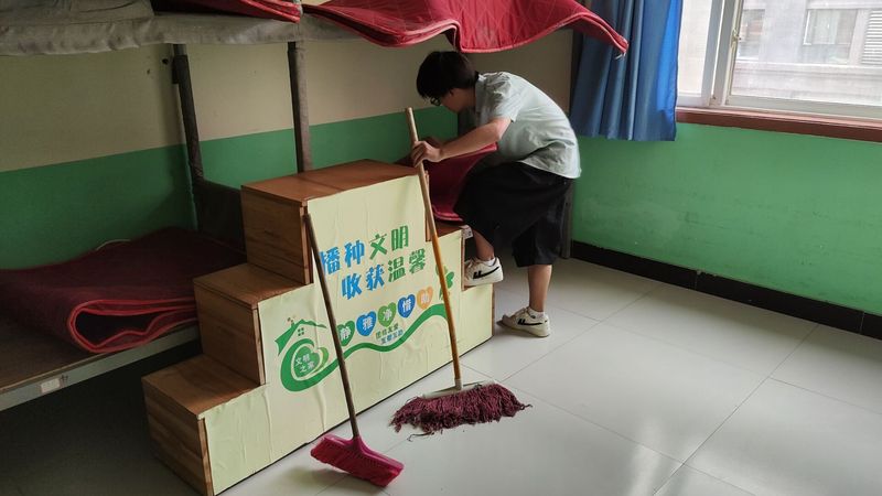 为了给本次实践活动画上圆满的句号,在学生们离校前实践小队成员对学生宿舍进行了突击检查和卫生打扫,在宿舍内的学生遵规守纪非常配合,对宿舍区进行仔细检查后未发现任何违禁物品,卫生整理过关、寝室干净整洁。并在放假前对各班讲解离校流程和注意事项。几天的相处下来,团队也与学生建立了深厚的感情,再次体验了中学时期纯粹的快乐,学生放假后与实践团队成员更是依依不舍让我们感受到了这次活动的重要意义。实践中,团队成员相互配合受到实践基地的支持与认可,正是由于实践基地老师的帮助,不仅提高了团队的工作效率和质量也为以后的学习工作提供了宝贵的经验。