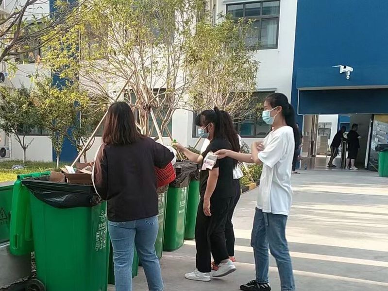 材料整理组在对每日汇报到群里的资料进行汇总的同时,韩雪芹同学会认真的将垃圾分类,并将分类好的垃圾投放到不同的垃圾箱内。对于其他居民,规劝他们正确投放垃圾。还有郭美宏同学在街道上进行垃圾清理工作,体验了环卫工人的不易。他们在炎炎烈日下,打扫卫生,美化环境,是我们学习的榜样。更警示团队成员要爱护环境,摒弃随地丢垃圾的行为。