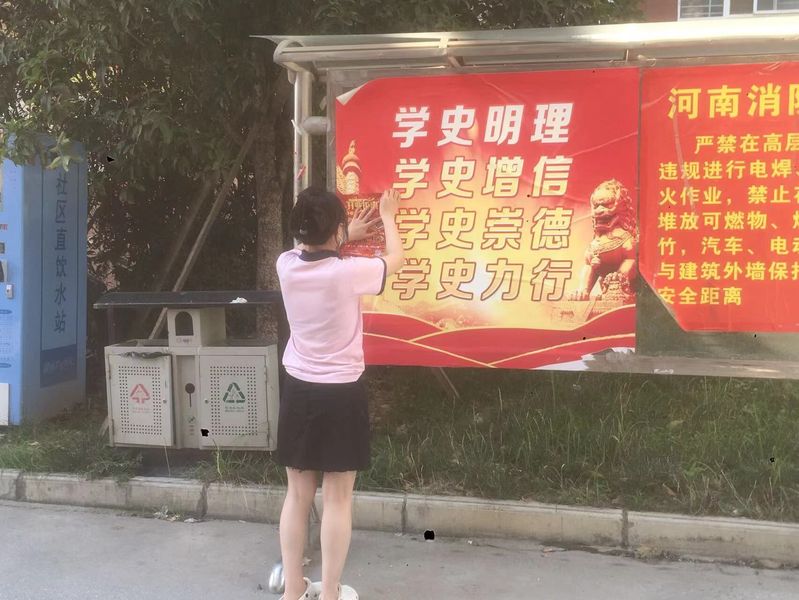 返乡实践组的成员们在赵雷村扮演起了不同的角色:垃圾分类的解说员任婷鸽,耐心为当地居民介绍每一个垃圾箱上的标志,每一种垃圾的属性,引导他们正确分类;河滩净化者陈雨,当地有河流和大坝的成员在保证安全距离的条件下自觉去河滩捡垃圾,减少水资源的污染;环卫工人的小帮手代圆圆,街道上人来人往,垃圾也有所增加,队员们积极的帮助环卫工人打扫街边卫生。此外,超市门口的广场是“随手扔垃圾”现象最为严重的地方之一,在广场的各个角度捡拾随手丢弃的烟头、果皮、塑料袋等等,大家用自己的行动向不良卫生习惯说“不”。清除乡村小广告,净化乡村环境,在实践中培养了队员们的奉献精神和社会责任感。