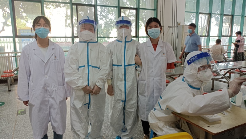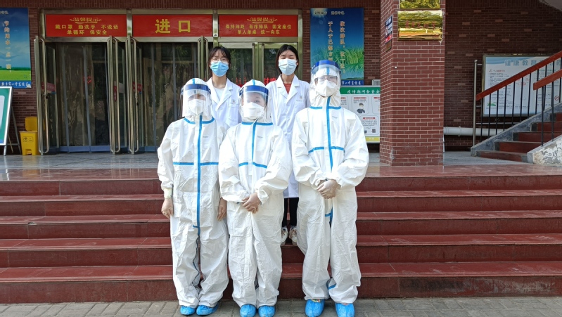 学习结束后,团队由新东区社区卫生服务中心分配任务,成员们积极协助参与核酸检测工作,如扫描场所码、测温、帮助填写信息、帮助老人申请核酸检测码、维持秩序、分发核酸检测小贴纸等。过程中,成员们不断提醒大家戴好口罩,做好个人安全防护,严格做到应检尽检、不漏一户、不落一人,引导老幼群体走特殊通道进行核酸检测,帮助不能熟练使用智能手机的老年人进行注册健康码,并劝导居民少出门,勤洗手,不聚集,助力核酸检测工作有序高效进行。此外,团队成员还在社区卫生服务中心的导诊台和护士站配合工作人员解答居民的健康问题,提高居民对自身健康的重视程度。