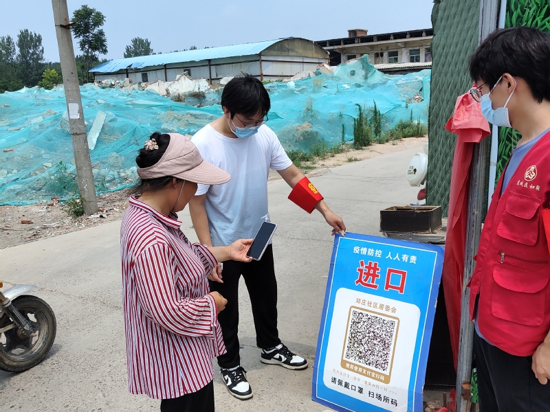 接下来,成员刘浩然与史文宝来到许昌市建安区邓庄乡社区担当志愿者,到达事先商议好的抗疫服务站点后,他们与当地的工作人员进行了交流,在了解了具体的操作流程和防范注意事项后,志愿二人组开始了为期6天的抗疫服务工作。他们与医务工作者一起认真做好抗疫服务工作,督促来访人员进行扫码,从而提高民众的防范意识,他们每天从早上7点工作到下午6点,不怕苦不怕累的精神得到了抗疫人员的肯定和赞赏。