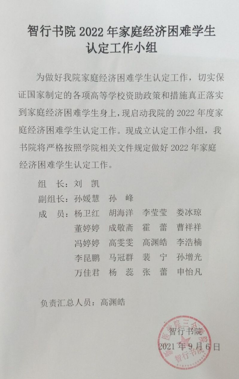为做好我院家庭经济困难学生认定工作,切实保证各项资助政策和措施真正落实到家庭经济困难学生身上,现启动我院的2022年度家庭经济困难学生认定工作。现成立认定工作小组,我书院将严格按照学院相关文件规定做好2022年家庭经济困难学生认定工作。