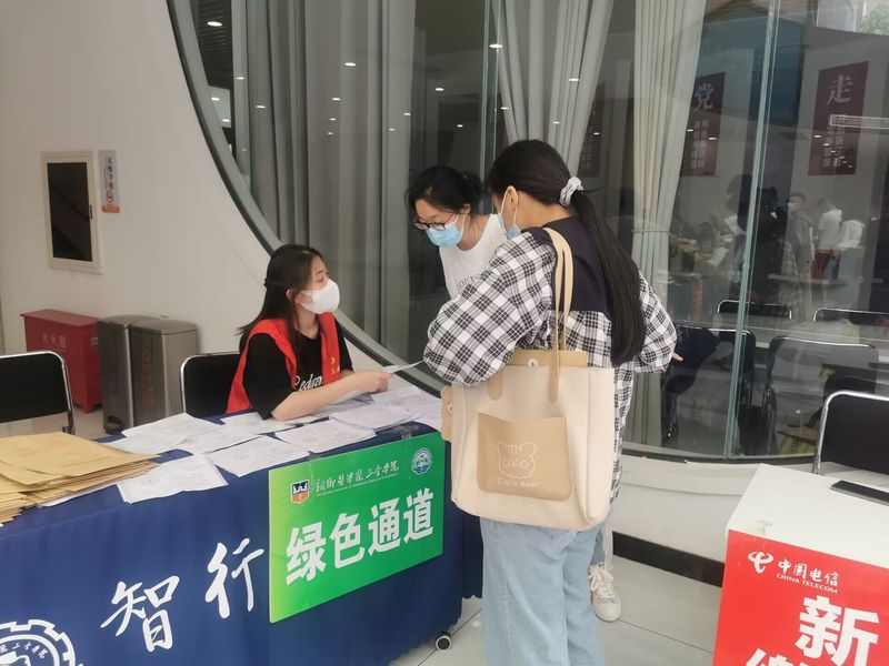 在2022级新生报到的时候,智行书院畅通新生入学“绿色通道”,助力新生顺利入学。书院设立绿色通道和资助政策咨询点,20余名“勤小助”学生资助政策宣传员协助开展新生“绿色通道”工作,提供政策讲解、咨询答疑、资助申请等服务。
