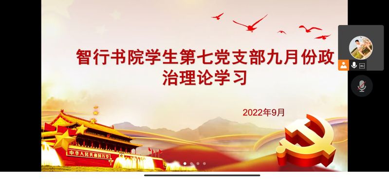 9月19日下午,智行书院学生第七党支部于腾讯会议开展九月份政治理论学习,党支部全体人员参加。会议由党支部书记胡海洋主持。