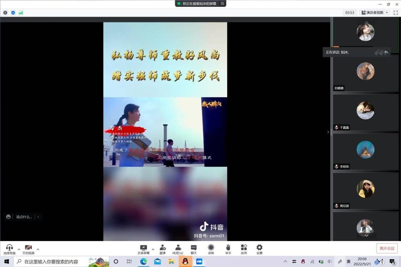 随后,支部党员结合自身实际进行了深刻的交流分享,于露露同志表示:“视频中的拍摄保留了一部分同期声,例如立德树人终身学习奖获得者化学与生命科学学院回瑞华老师,她经常说:有一份热,发一分光!在父亲优良品格的影响下,一生保持着吃苦认真的精神投身于教育事业。这种同期声使观众不仅真实、生动地感受到教师在自己的岗位上发光发热,在教学生涯中的不断探索研究,还能逐渐触及到教师灵魂的最深处,看到教师拼搏与无私奉献、爱心与信心的精神。”