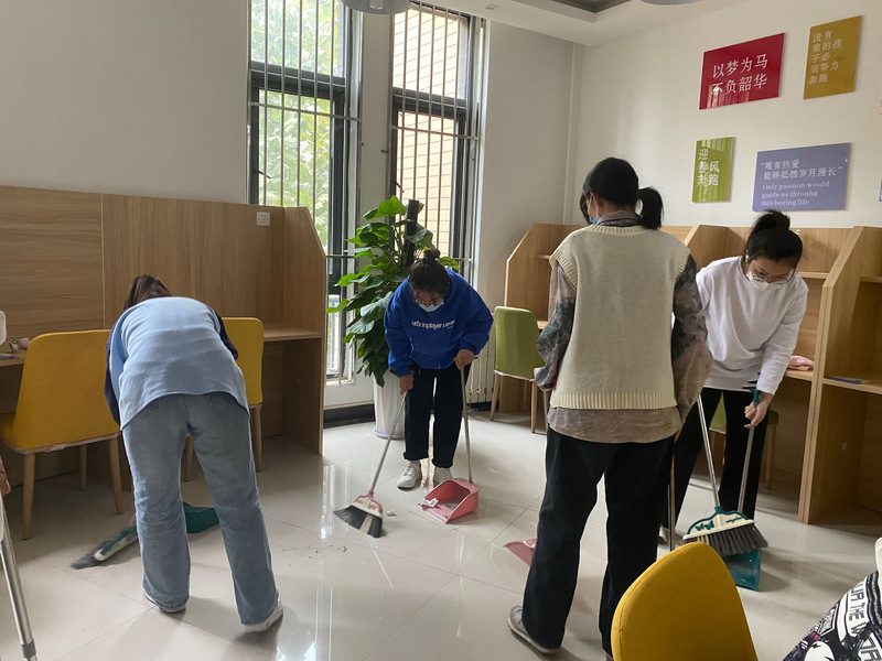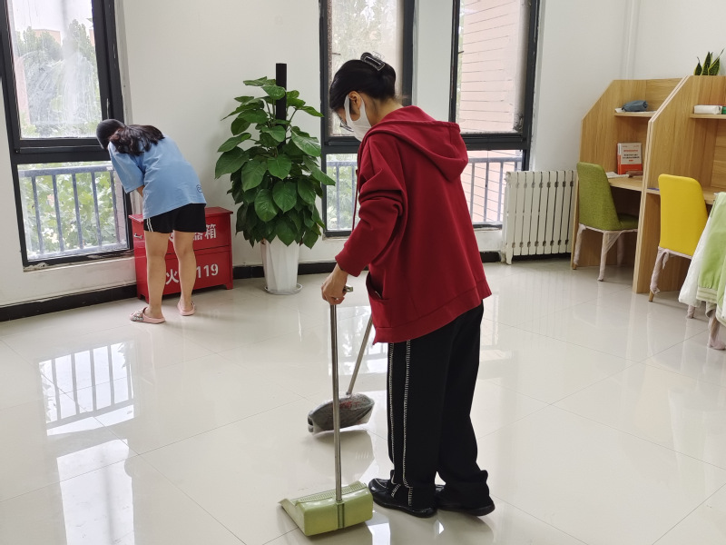 活动中,同学们自带清扫工具,热情投身于劳动,合理分工、干劲十足、团结一致,积极发扬不怕脏、不怕累的精神,将包干区域清扫的干干净净,焕然一新。转眼间,大家已将功能区里面的课桌摆放整齐,抽屉干净无杂物,窗户明亮无污迹;室外区域桌椅回归原位,地面干净,卫生死角无垃圾...…阳光下,滴滴汗水挂在同学们自豪灿烂的脸上,如珍珠般耀眼闪亮,他们用自己的实际行动为书院增添一份清新,一抹明亮。