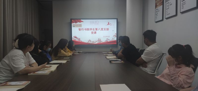 9月23日晚,智行书院学生第八党支部在四号楼会议室开展了以“喜迎党的二十大,砥砺奋进新征程”为主题的党课,本次党课由支部书记娄冰琼主讲,支部全体党员参加。