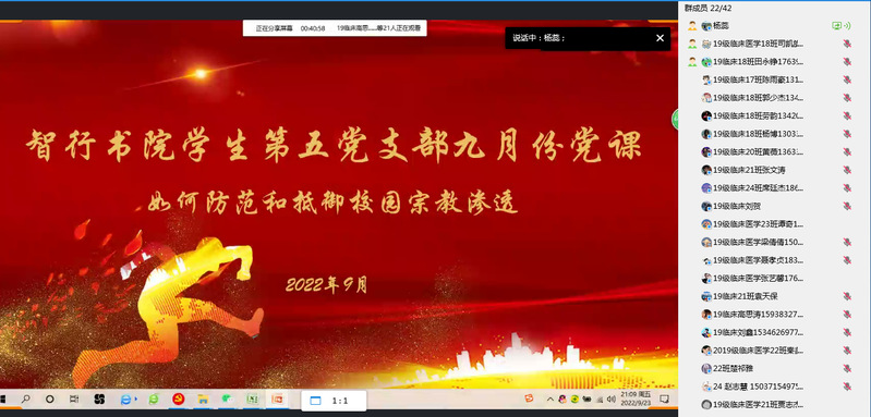 9月22日晚,智行书院学生第五党支部于线上开展了九月份专题党课学习活动。此次党课由党支部书记杨蕊主讲,支部全体党员参加。