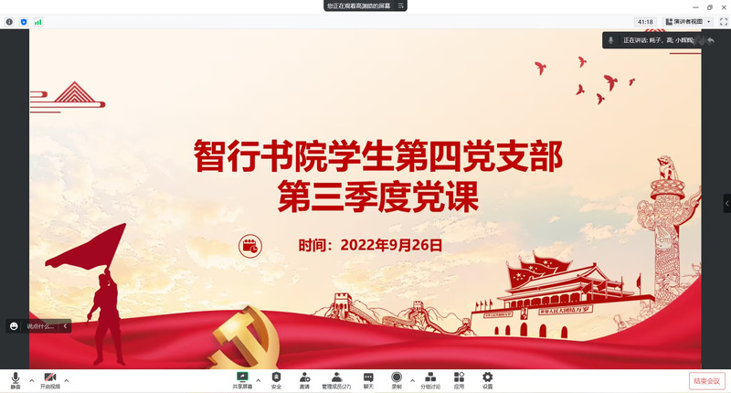 9月26日晚,学生第四党支部开展第三季度党课学习,此次党课由党支部书记高渊皓主讲,支部全体党员参加。