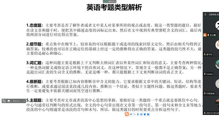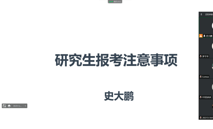 为进一步加强智行书院学风建设,帮助毕业生解决如何高效备考、择校等考研热点问题,提升医学影像技术专业学子考研成功率,在今年研究生招生考试报名到来之际,书院联合医学影像学院于10月12日晚通过腾讯会议共同举办了“‘研’途有你 筑梦起航”考研指导会。会议由医学影像学院院长史大鹏主讲,教师代表、辅导员及2021级医学影像技术专业全体学生参加。