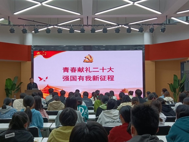 为进一步加强大学生的思想政治引领,引导学生树立远大志向,锤炼过硬本领,智行书院党总支书记刘凯化身思政课讲师,以《青春献礼二十大,强国有我新征程》为题为书院全体师生上了一堂生动的思政课。课堂上,刘凯首先对2022级新生加入智行大家庭表示热烈的欢迎,他希望新生们能尽快适应新生活,在大学这个舞台上勇于展现自我,追逐梦想,学有所获,学有所成。接着,他以中国这十年高质量的发展之路作为授课重点,教育引导学生笃定奋斗目标跟党走,志存高远、脚踏实地,争做爱党爱国的模范、勇于创新创造的模范,践行“请党放心、强国有我”的青春誓言。