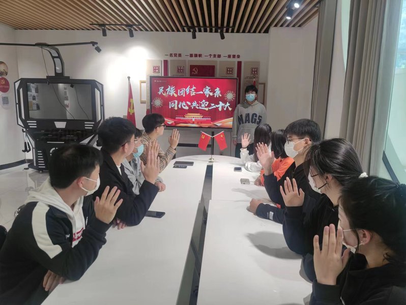 为团结引领广大团员青年永远跟党走,以昂扬的斗志和精神状态迎接党的二十大胜利召开,智行书院团总支组织各团支部开展重温入团誓词、参观党史馆、红色观影等主题团日活动。“重温入团誓词,践行青春誓言”宣誓活动中,那一声声慷慨激昂的铮铮誓言,震撼激励着现场的每一位共青团员。简短、庄重的宣誓仪式,让团员们再一次经历了心灵的洗礼,再一次坚定初心,坚守信仰,引导着团员青年不忘誓言,不辱使命,永葆先进。