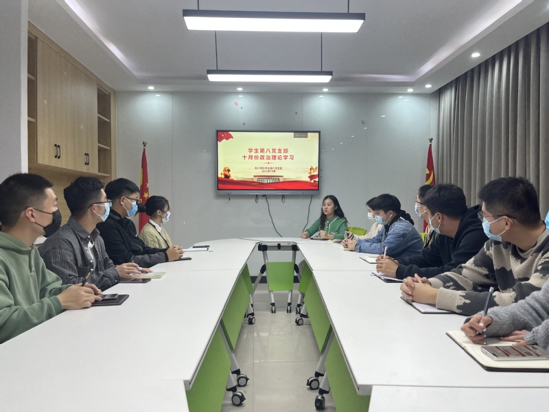 10月23日下午,智行书院学生第八党支部在2公寓三楼党支部工作站召开十月份政治理论学习。会议由党支部书记娄冰琼主持,党支部全体成员参加。