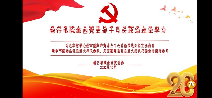 10月24日晚,智行书院学生第四党支部通过腾讯会议线上开展十月份政治理论学习,党支部全体成员参加。会议由党支部书记高渊皓主持。