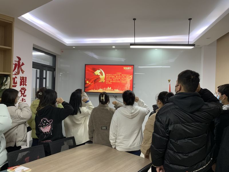 为更加全面深刻理解习近平新时代中国特色社会主义思想,支部书记高雯雯组织学生党员学习习近平总书记在党的二十大会议期间的重要讲话精神并开展相关特色活动。她强调作为新时代的青年党员大家要做的就是认真学习党章精神,把党章精神和要求内化于心、外化于行,坚定理想信念,强化责任担当。活动形式多彩多样,首先由全体党员集体宣誓入党誓词,随后,由段婷婷、张二垒和董梦瑶三位同志分享自己印象深刻的红色故事,让红色故事人人讲,革命精神代代。巾帼英雄赵一曼、真理种子的“种火者”陈望道、革命先烈方学元……一段段感人的红色故事让大家了解到了中国共产党的光辉历程,传承红色基因,弘扬革命精神。活动在陈余龙同志带来的吉他弹唱中达到高潮,大家情不自禁的一起合唱《我和我的祖国》,让全体师生党员发自内心感恩党、听党话、跟党走。同时大家还在线上集体观看了电影《可爱的中国》,进行积极的线上互动。