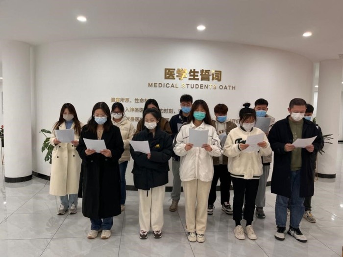 接着,全体成员就学习的内容展开了热烈的讨论,学生党员逐一分享自己的学习心得。王韩表示:“作为当代大学生,我们应该肩负起历史使命,抓住时代机遇,刻苦钻研学习,为美好人生奋斗,为祖国美好未来奋斗。”学生党员张海月:“作为一名医学生,我深知肩负的责任和使命,我要努力学好专业知识和技能,坚持理论联系实际,在担当中历练,在尽责中成长,成为担当民族复兴大任的时代新人。”