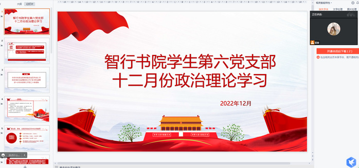 12月20日晚,学生第六党支部通过腾讯会议线上开展十二月份政治理论学习。会议由党支部书记霍蕾主持,支部全体党员参加。