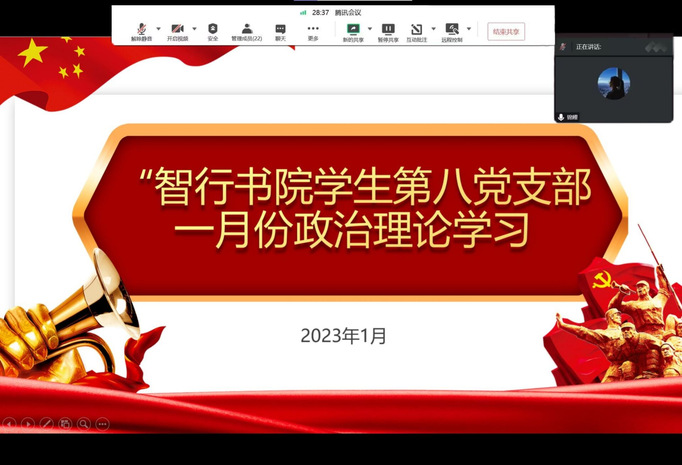 1月20日晚,智行书院学生第八党支部通过腾讯会议召开一月份政治理论学习。会议由党支部书记娄冰琼主持,党支部全体成员参加。