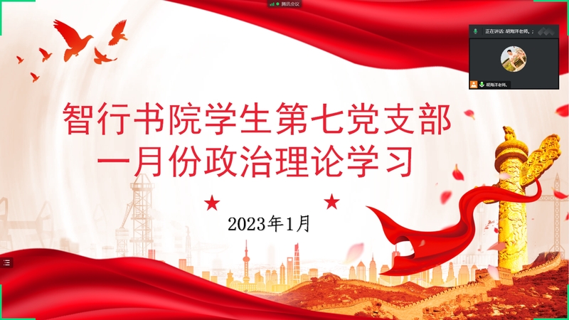 1月21日下午,智行书院学生第七党支部通过腾讯会议开展一月份政治理论学习。会议由党支部书记胡海洋主持,支部全体党员参加。