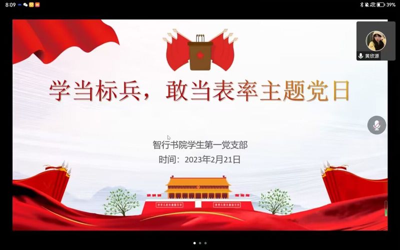 为深入学习贯彻党的二十大精神,2月20日下午,智行书院学生第一党支部开展“学”当标兵、“敢”当表率、“干”当先锋主题党日活动,本次活动由党支部书记李莹莹主持,支部全部党员参加。