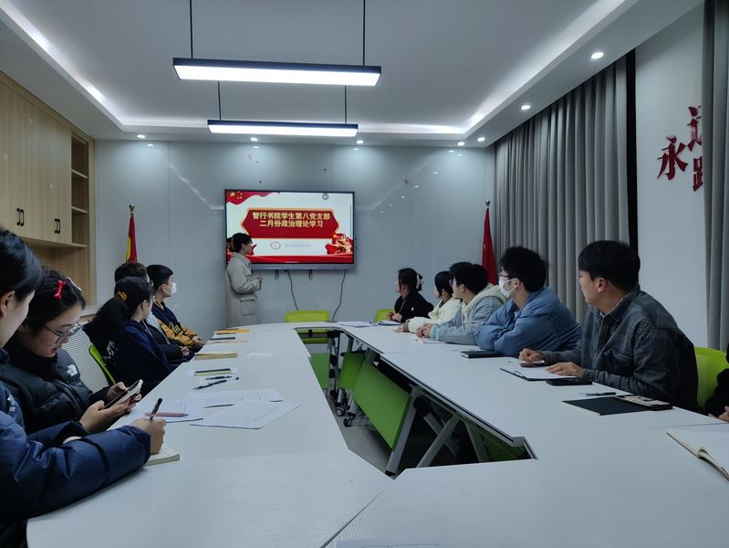 2月21日晚,智行书院学生第八党支部在学生2号公寓楼三楼党支部工作站召开二月份政治理论学习。会议由党支部书记娄冰琼主持,党支部全体成员参加。