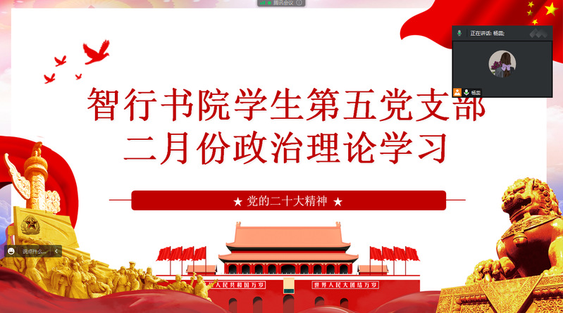 2月20日晚,智行书院学生第五党支部于线上开展二月份政治理论学习。会议由党支部书记杨蕊主持,党支部全体成员参加。