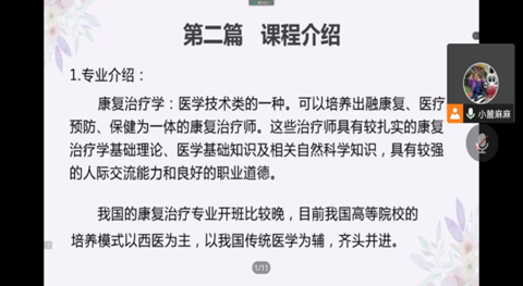 10月21日下午,康复医学院学业导师马翡雁通过线上腾讯会议的形式开展了本学期第一场学业指导会,2022级老年保健与管理7-8班全体同学参加。会上,马老师向同学们阐述了老年保健与管理专业的就业前景,她表示由于我国正在步入老龄化社会,全国有2830万老年人生活不能完全自理,共需要养老护理员1000万人,而目前全国养老机构的职工只有22万人,其中取得职业资格的仅有2万多人,供需矛盾十分突出,本专业既是新兴专业也是急需专业,大家毕业后择业方向主要是社区养老服务单位及老龄产业相关机构,希望大家在日常学习中脚踏实地,为后续就业打下良好基础。同时,她建议大家要不断拓宽自己的视野,多读书并利用课余时间多考一些专业资格证,莫要等到“证到用时方恨少”。最后,马老师勉励同学们无论学习还是生活,都要增强自己的信心,做到专业自信、个人自信,努力成为一名对社会发展有贡献的新时代大学生。