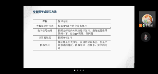 12月6日,智能医学工程学院学业导师季超越于腾讯会议开展以“期末考试专业课复习指南”为主题的座谈会,2020级智能医学工程71班全体同学参会。