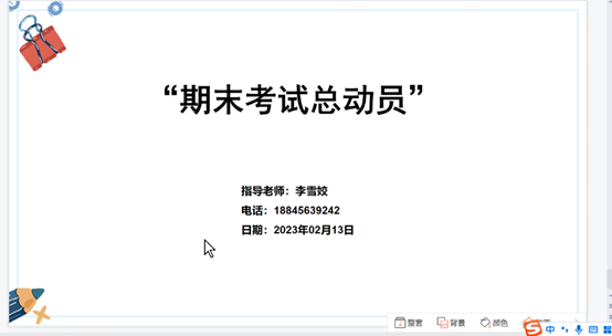 2月13日,为帮助同学们提高期末复习的备考效率、解决学习中可能遇到的困惑、传授科学备考的方法,基础医学院学业导师李雪姣于腾讯会议开展以“期末考试总动员”为主题的线上指导会议。2022级康复治疗学31班、32班全体同学参会。