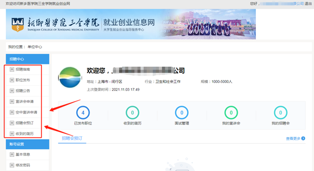 信息网单位后台双选会展位预定和空中宣讲会申请
