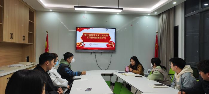 3月16日晚,智行书院学生第八党支部在2号公寓楼三楼党支部工作站召开三月份政治理论学习。会议由党支部书记娄冰琼主持,党支部全体成员参加。