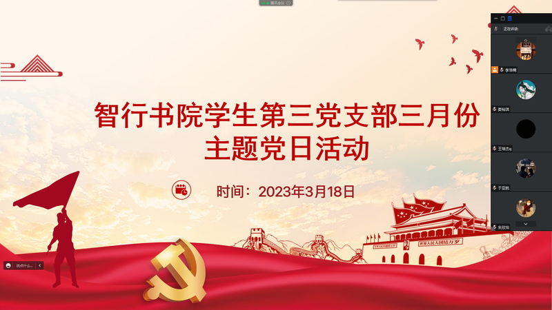 3月18日,智行书院学生第三党支部开展三月份主题党日活动,活动由党支部书记李浩楠主持,支部全体成员参加。