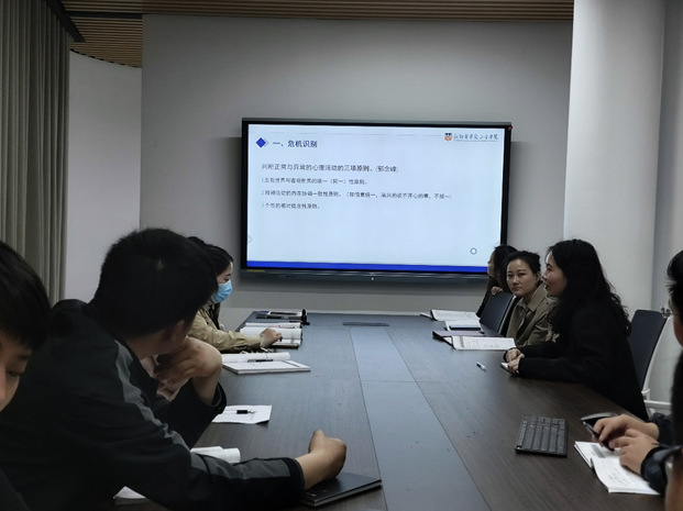 培训主要从“心理危机识别”和“辅导员谈心谈话能力”两个方面展开。李程首先讲述了学生正常心理活动与异常心理活判断的三项原则,随后她以书院正在积极推进的新学期学生心理情况排查访谈为切入点,详细讲解了辅导员谈话技巧以及沟通过程中的注意要点。她建议辅导员在谈话时围绕学生学业、情感、人际关系、兴趣爱好等方面拓展进行,以开放式的反问引导学生主动诉说,同时辅导员积极倾听并和学生产生共情。会议最后大家结合当前在心理工作中遇到的难题进行了交流,李程针对具体问题进行了详细解答和指导建议。