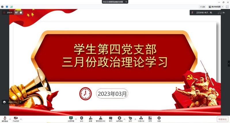 3月21日下午,智行书院学生第四党支部通过腾讯会议开展三月份政治理论学习。会议由党支部书记高渊皓主持,党支部全体成员参加。