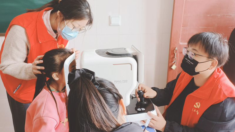 为增强学生保护视力、爱眼护眼健康意识,提高近视防控工作水平,3月24日,智行书院联合光明眼科学院走进杨厂村第一小学开展“关爱保护眼睛暨近视预防宣传教育活动”。到达小学后,志愿者随即便开始为小学生们进行视力初检和筛查,在杨厂村中心小学老师的组织协调下,小学生们有序的排队进行测视力、验光,志愿者详细记录检查结果,对于存在视力问题的学生进行逐一备注,并给出了针对性的矫正方案,真正做到早发现、早治疗,防控结合。随后在筛查现场,光明眼科学院操甲硕老师带领志愿者为小学生们讲解保护视力、预防近视的知识与方法,告诉学生们要合理安排作息时间,尽量减少电子产品的使用时间,培养良好的用眼习惯,让青少年增强建康护眼意识。光明眼科学院李智老师带领志愿者为小学们和老师免费修理、清洗眼镜,并宣导正确的眼镜使用和维护方法,同时提醒同学们要注意用眼卫生,把近视防控与素质教育结合,科学防控近视发生。