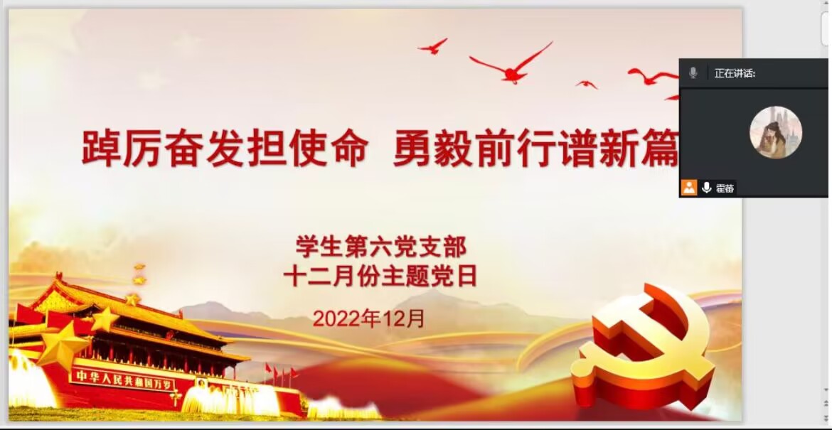为学习宣传贯彻党的二十大精神,12月20日,智行书院学生第六党支部于线上开展“踔厉奋发担使命,勇毅前行谱新篇”主题党日活动,活动由党支部书记霍蕾主持,党支部全体党员参加。