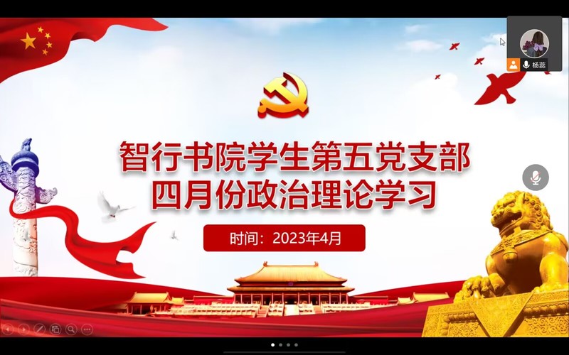 4月17日晚,智行书院学生第五党支部于线上开展四月份政治理论学习。会议由党支部书记杨蕊主持,党支部全体成员参加。
