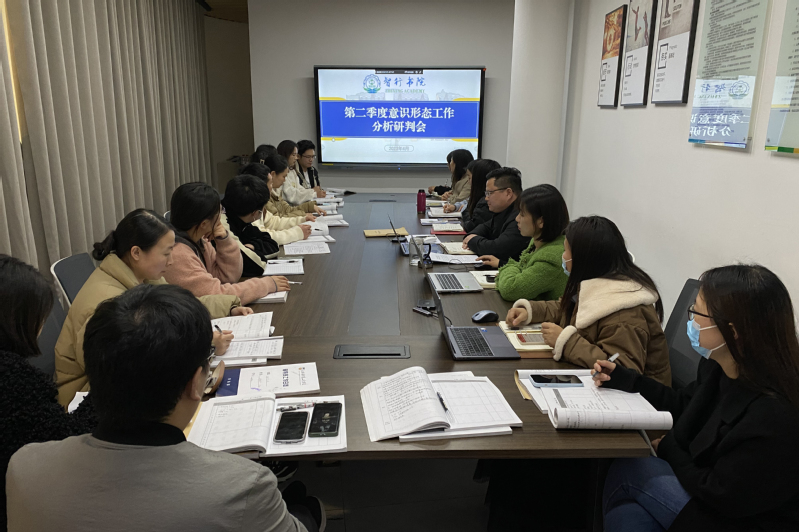 为认真贯彻落实我校关于意识形态工作的最新要求,进一步压紧压实意识形态工作责任,研判分析当前意识形态问题态势,4月24日下午,智行书院在书院会议室召开了第二季度意识形态工作分析研判会,书院全体教师党员参加。会议由智行书院党总支书记刘凯主持。