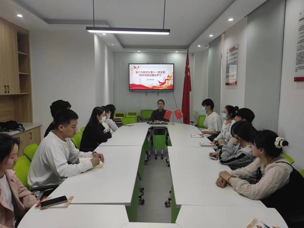 4月21日中午,智行书院学生第十一党支部在一号公寓楼党支部工作站开展四月份政治理论学习,本次学习采用“集中学习+研讨”的方式进行。会议由党支部书记冯婷婷主持,党支部全体成员参加。