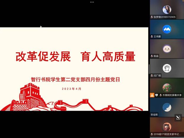 4月21日,智行书院学生第二党支部开展“改革促发展 育人高质量”主题党日活动,活动由党支部书记杨卫红主持,支部全体成员参加。